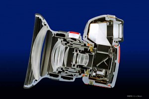 A tous ces systèmes, s’ajoute bien sûr une bonne partie d’éléctroniques (processeur, mémoires, convertisseur analogique-numérique, …) afin de transformer les informations du capteur en une image exploitable. Au final, on a donc un reflex qui ressemble à ca :